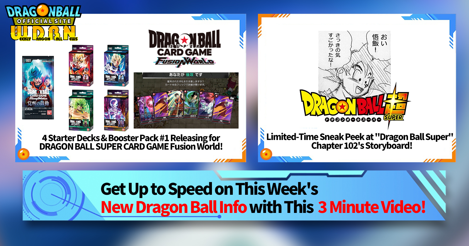 This week, our top story is on the four starter decks and booster pack set #1 being released for DRAGON BALL SUPER CARD GAME Fusion World on February 16!