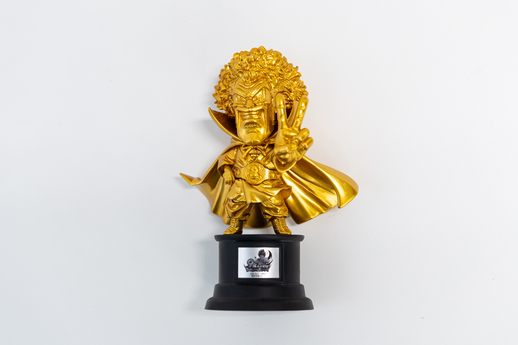 (Commemorative golden Mr. Satan trophy given to attendee with the highest Power Level)