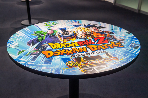 In the center of the lobby were a series of round tables, each featuring a special Dokkan Battle-themed design! Attendees could use these to play games, respond to surveys, and hang out with other fans.