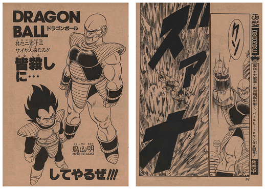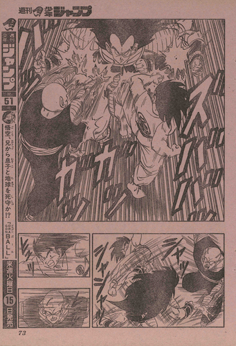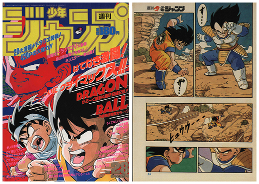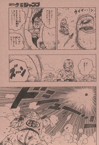 The main story saw the end to Goku and Vegeta's fight, with the defeated Goku using his last bit of strength to entrust the Genki-dama to Krillin.