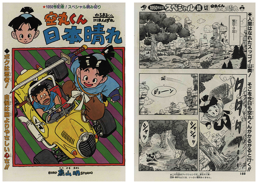 This issue also featured a one-shot comic written by Akira Toriyama, "Karamaru and the Perfect Day!".