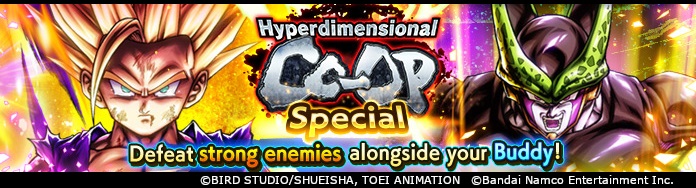 As a limited-time reward, get double the usual amount of Dual Coins and Great Dual Coins in this special Hyperdimensional Co-Op! Get even more Dual Coins after a victory if you include the new character Super Saiyan 2 Gohan (Youth) (DBL68-03U) in your Party! Make sure to collect tons of Dual Coins and trade them for Chrono Crystals, Multi-Z Power, and other incredible items! Also, don't miss your chance to pick up some Event-exclusive Unique Equipment, Episode Medals: (Cell Saga (Z)), and more!
