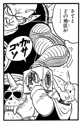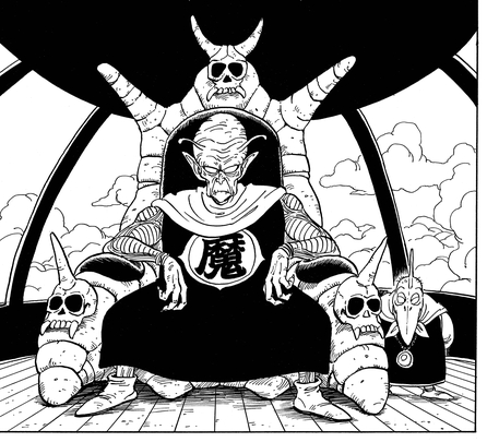 The Demon King forces the World King to crown him as the new ruler of the planet, and Piano gleefully prepares cards numbered for each of the 43 provinces. Piccolo plans to draw one card at random each year and destroy the corresponding province... Well, they certainly don't call him "Great Demon King" for nothing!