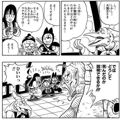 Later, when Kamesennin attempts the Mafu-ba on Piccolo in a desperate attempt to seal the Demon King away, Piano recognizes the technique immediately and exclaims "D-Don't... Don't tell me...!!"
