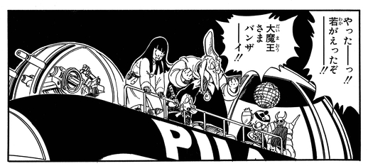 After getting his youth restored, Piccolo has no more use for the Pilaf Gang and tells them to get lost. He also instructs Piano to take over the helm of the flying base, so it appears that, true to his pterodactyl looks, he is indeed adept at "flying" through the sky!