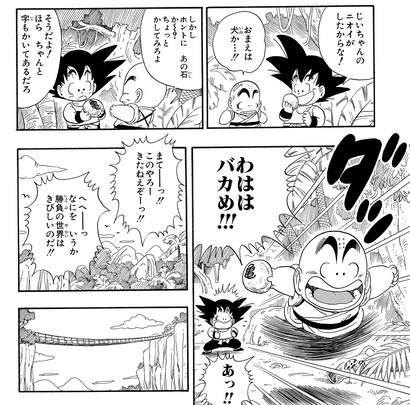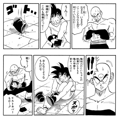 Ikezaki: Another great part is later on after Goku and Krillin have completed their training and discover they can now jump astoundingly high. That one was so exciting to read growing up, and I remember thinking, "Wow, training sure looks amazing!"