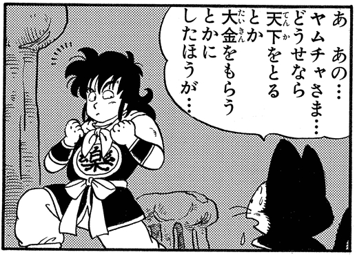 Yamcha wants to use the power of the Dragon Balls to get rid of his crippling fear of women, but a confused Puar responds, "Shouldn't you ask to rule the world, or for boundless wealth or...something?"