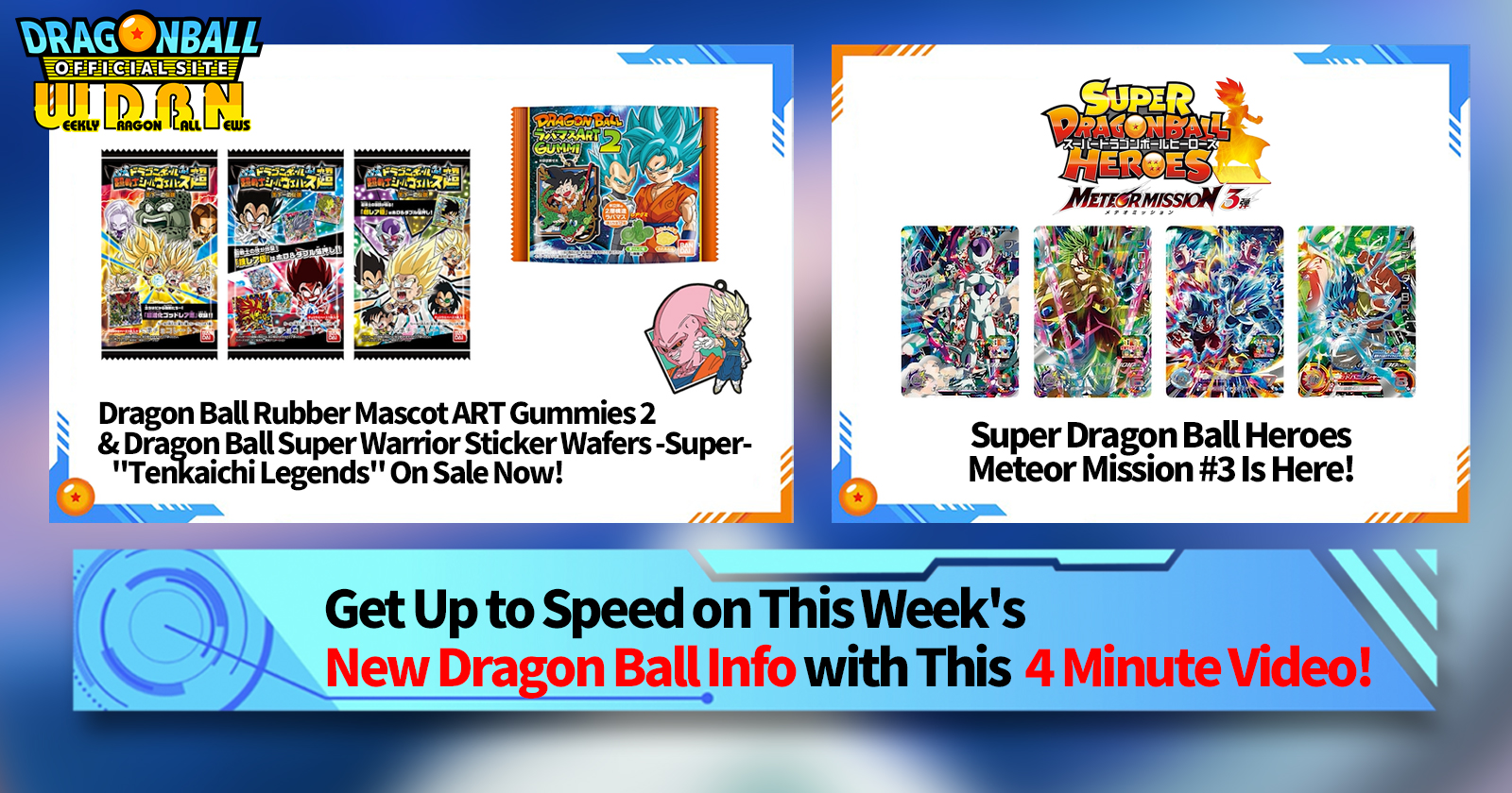 This week's broadcast has the scoop on Dragon Ball Rubber Mascot ART Gummies 2 and Dragon Ball Super Warrior Sticker Wafers -Super-: Tenkaichi Legends! These two new items went on sale on March 4th and March 11th, respectively.