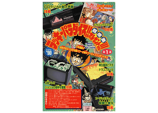 Moving on a bit, the new year's issue for 1990 was loaded with present gift giveaways! Lucky readers were able to win awesome gifts like a gold Dragon Ball-themed alarm clock or a VCP.