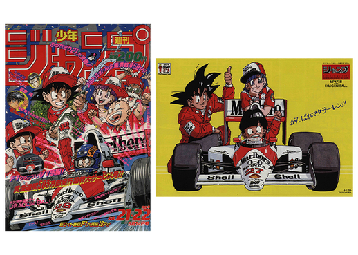 The stage for the eventual battle between Goku and Frieza began to be set on the covers of Shonen Jump, and amidst this exciting atmosphere, an F1 racing boom also took over the world! Weekly Shonen Jump even joined the F1 Japan Grand Prix as a sponsor, which led to the dream collab you see here! Check out Goku and company decked out in F1 style on the cover and poster!
