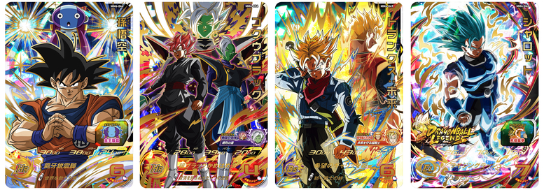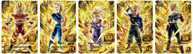 The UR cards in this set include warriors appearing in the promotional CG tie-in movie and characters appearing in the Future Trunks Arc from Dragon Ball Super!
