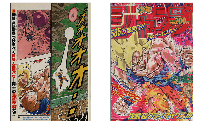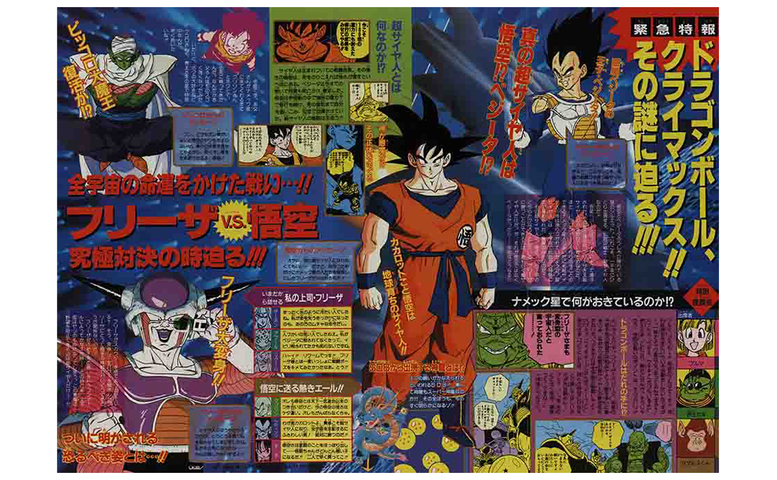 Super Saiyan Goku then exploded onto the cover of this issue of Weekly Shonen Jump! Here, the final battle against the Super Saiyan and the evil emperor unfolded, starting with some stunning color pages!