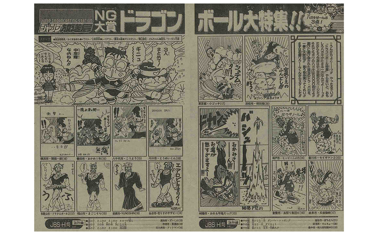 Around this time, Dragon Ball mania also spread to the "Jump Broadcasting Station" readers' corner of the magazine! Readers shared their original Dragon Ball gags here in a deluxe feature.