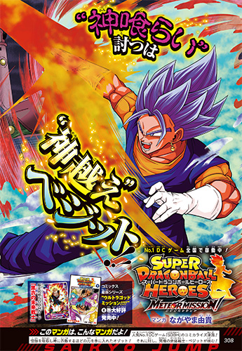 In this issue, our hero Beeta encounters Suguru, a boy who worships Zamasu, and takes him on in a blistering Super Dragon Ball Heroes duel! This chapter also features a deck using the Vegito SEC card from Meteor Mission #4!