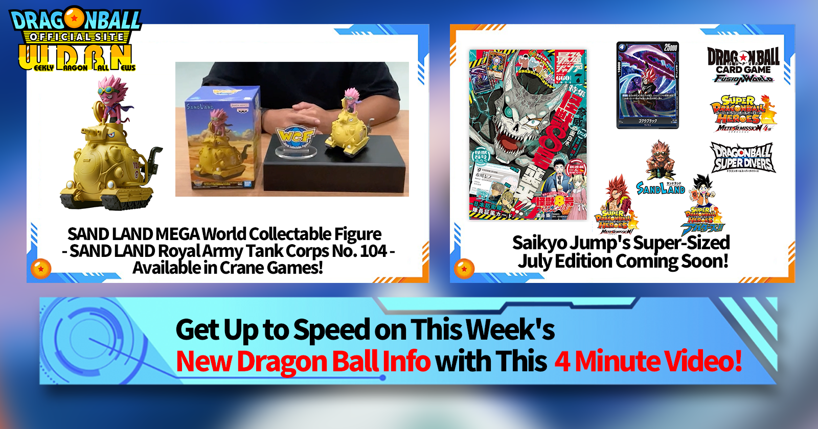 "Weekly Dragon Ball News" is a video series updated every Monday (JST) to bring you the latest news in the world of Dragon Ball! Join V Jump editor Victory Uchida as he covers all the hottest info released in the previous week as well as fresh updates like new product info and site news for the week to come!