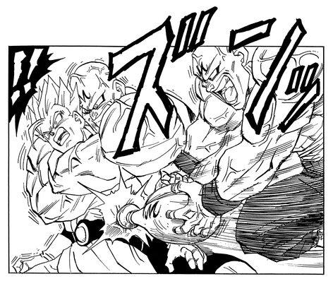 The next match of the tournament features Gohan, who unleashes his Super Saiyan transformation to a stunned crowd. Seeing an opportunity to steal a large amount of energy and speed along Majin Buu's revival, Spopovich and Yamu jump into the ring and drain the teenage warrior's surging energy.