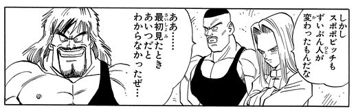 The tournament announcer knew Spopovich from previous years and he remarked, "You look so different from before. I didn't recognize you." upon seeing him at the 25th Tenkaichi Budokai. Other contestants were equally perplexed by the change, saying stuff like "Yeah...I didn't recognize him at first..."