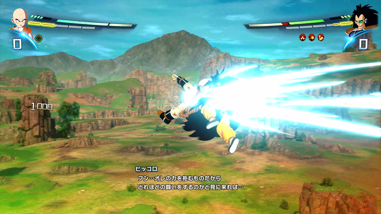 While playing through the "Goku" story, I felt that Raditz was super powerful for an enemy that appears so early on. You must defeat Raditz to get to the alternate storyline, but since his movements are so precise and he has so much health and attack power, it'll be hard to do on your first playthrough. In playing this demo as Goku, I couldn't help but sympathize with Goku and think to myself, "Geez, this fight against Raditz really was tough!"