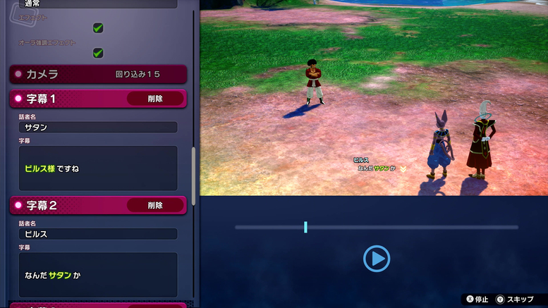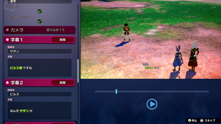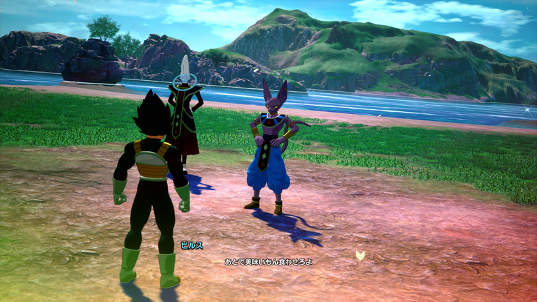 In "Extra Battle" you can also change which characters appear and their lines! As you can see in the photos above, Vegeta was switched out for Mr. Satan, so he's now the one training under Beerus!