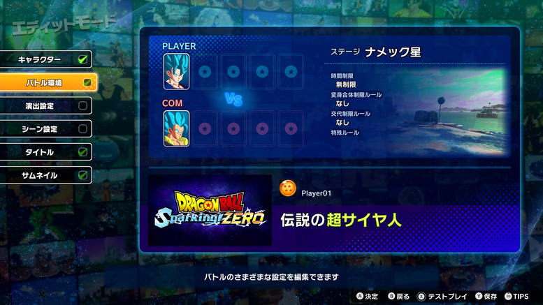 "Edit Mode" allows you to customize different battle settings to create your own original battle!