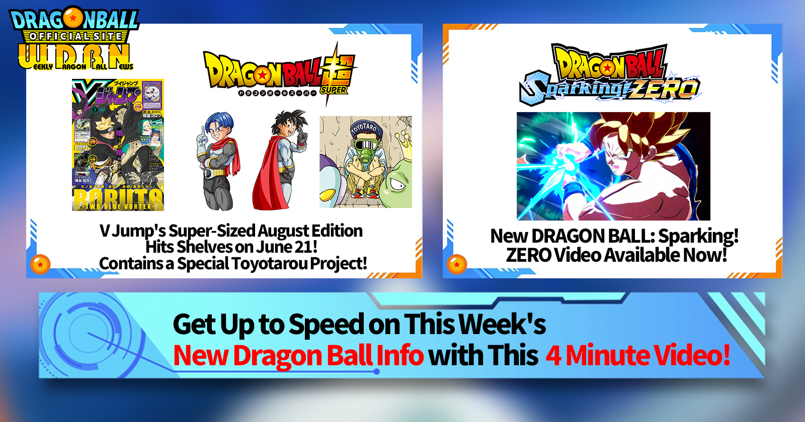 "Weekly Dragon Ball News" is a video series updated every Monday (JST) to bring you the latest news in the world of Dragon Ball! Join V Jump editor Victory Uchida as he covers all the hottest info released in the previous week as well as fresh updates like new product info and site news for the week to come!