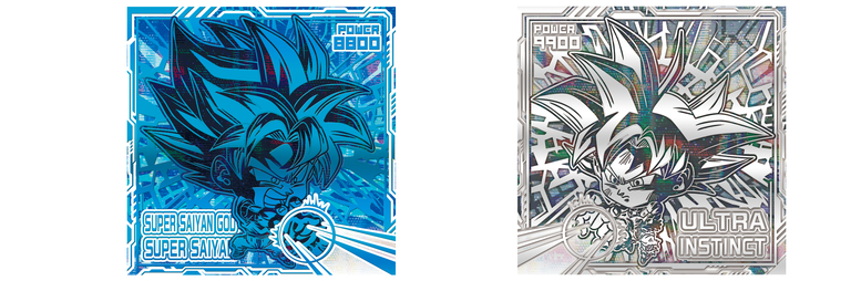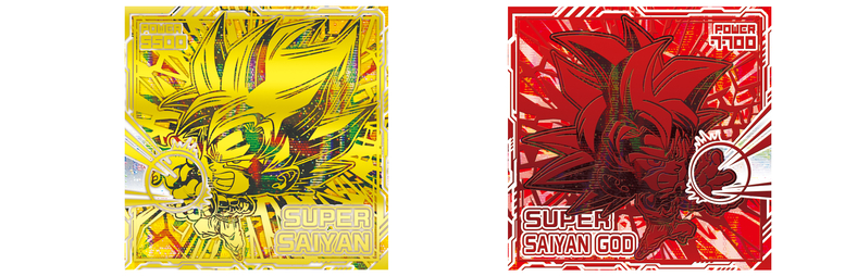 These rare "Goku Special" stickers are packed to the brim with shiny, dazzling effects! As you can see above, four of Goku's iconic transformations have been immortalized here using four different colors of foil stamping.