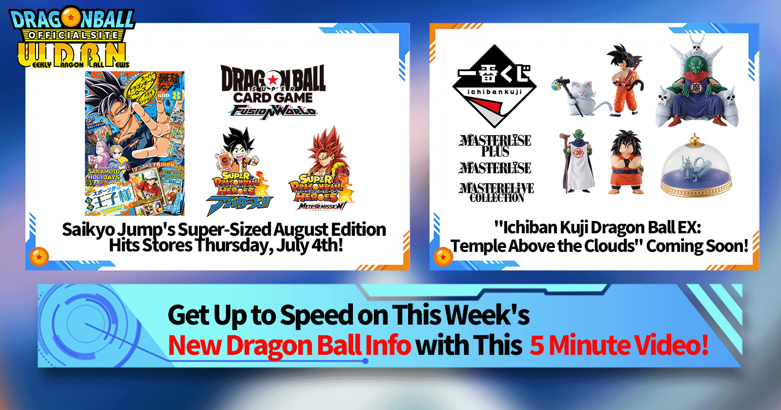 "Weekly Dragon Ball News" is a video series updated every Monday (JST) to bring you the latest news in the world of Dragon Ball! Join V Jump editor Victory Uchida as he covers all the hottest info released in the previous week as well as fresh updates like new product info and site news for the week to come!