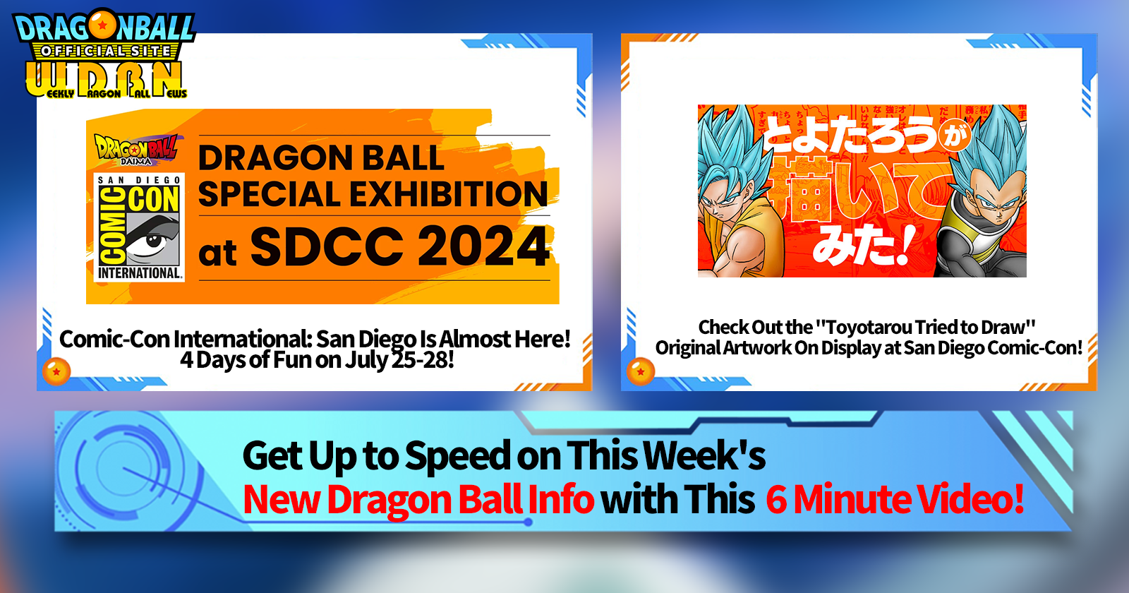 "Weekly Dragon Ball News" is a video series updated every Monday (JST) to bring you the latest news in the world of Dragon Ball! Join V Jump editor Victory Uchida as he covers all the hottest info released in the previous week as well as fresh updates like new product info and site news for the week to come!