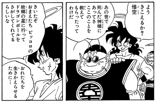 Yamcha talks to Goku on Planet Namek via North Kai's telepathic powers, and is shocked to learn that their new foe Frieza far outclasses even the mighty Saiyan prince, Vegeta.