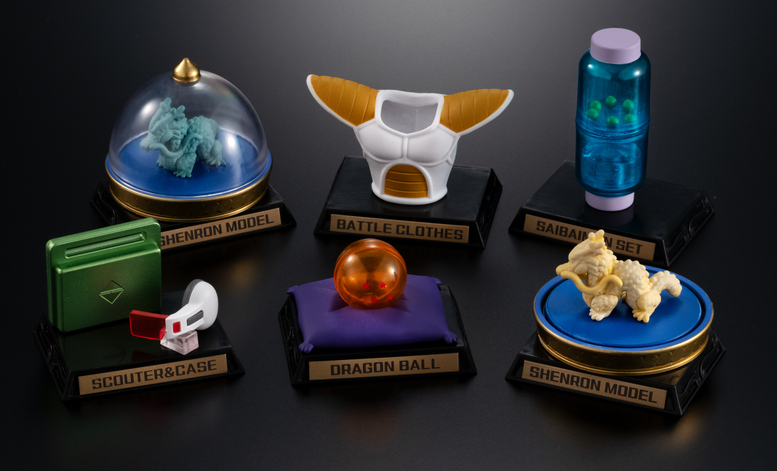 The lineup this time features the following 6 iconic items: the Four-Star Dragon Ball, Saiyan battle armor, Scouter & Scouter case, a Shenron model, a power-infused Shenron model, and a Saibaiman Set!