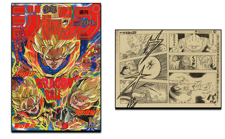 To mark this amazing milestone, Shonen Jump had its first-ever "transformation" extra-wide cover! When fans unfolded the cover, Majin Buu appeared!