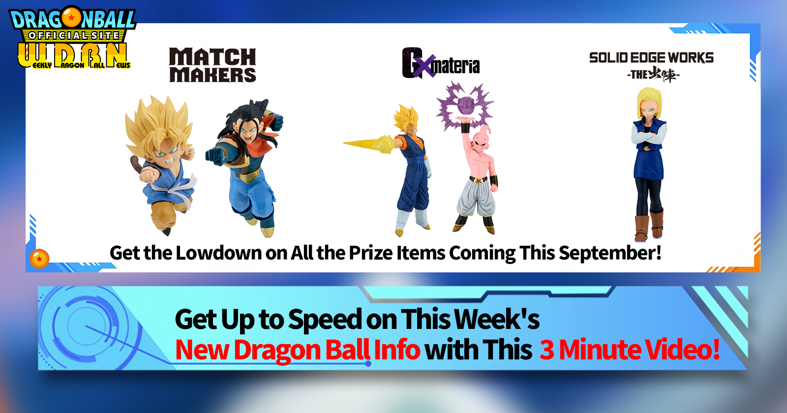 "Weekly Dragon Ball News" is a video series updated every Monday (JST) to bring you the latest news in the world of Dragon Ball! Join V Jump editor Victory Uchida as he covers all the hottest info released in the previous week as well as fresh updates like new product info and site news for the week to come!