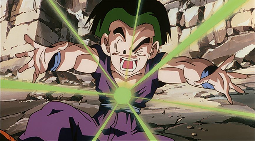 Broly shows no mercy to the young Trunks and Gohan! Trunks gets captured in the attack, leaving the half-Saiyan boy terrified!