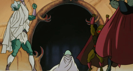 Ginger and co. were so ecstatic when their master Garlic Jr. finally got his wish granted by the Dragon Balls that he exclaimed " Hooray...hooray!", during which Goku interrupts the nefarious celebration.