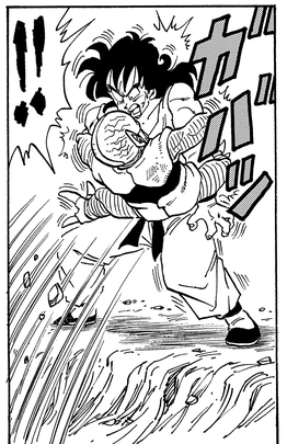 Tenshinhan knocks it down with an elbow strike and the Saibaiman is killed by Vegeta while it tries to get up!
