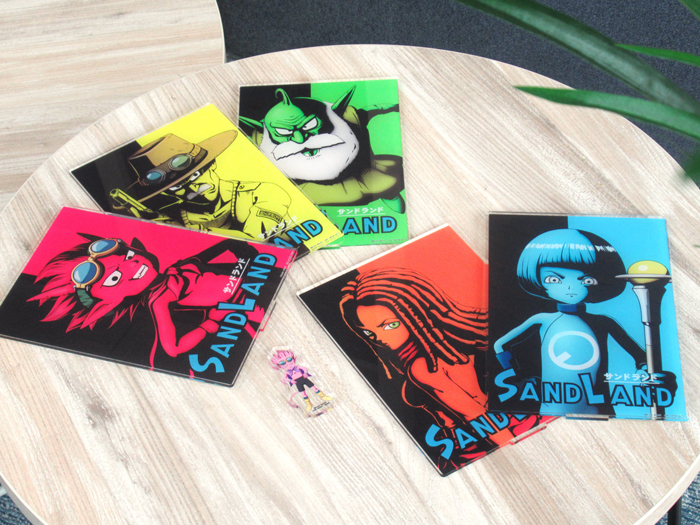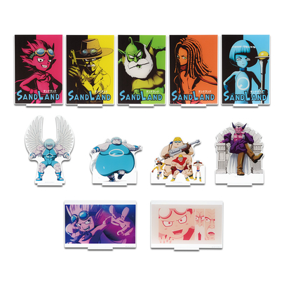 And that's not all! Big acrylic stands of the Swimmers and Satan, cloth posters with super cute or awesomely cool designs, and an amazingly complete History Post Card Collection are available! Every item in this set is sure to please fans of SAND LAND: THE SERIES!