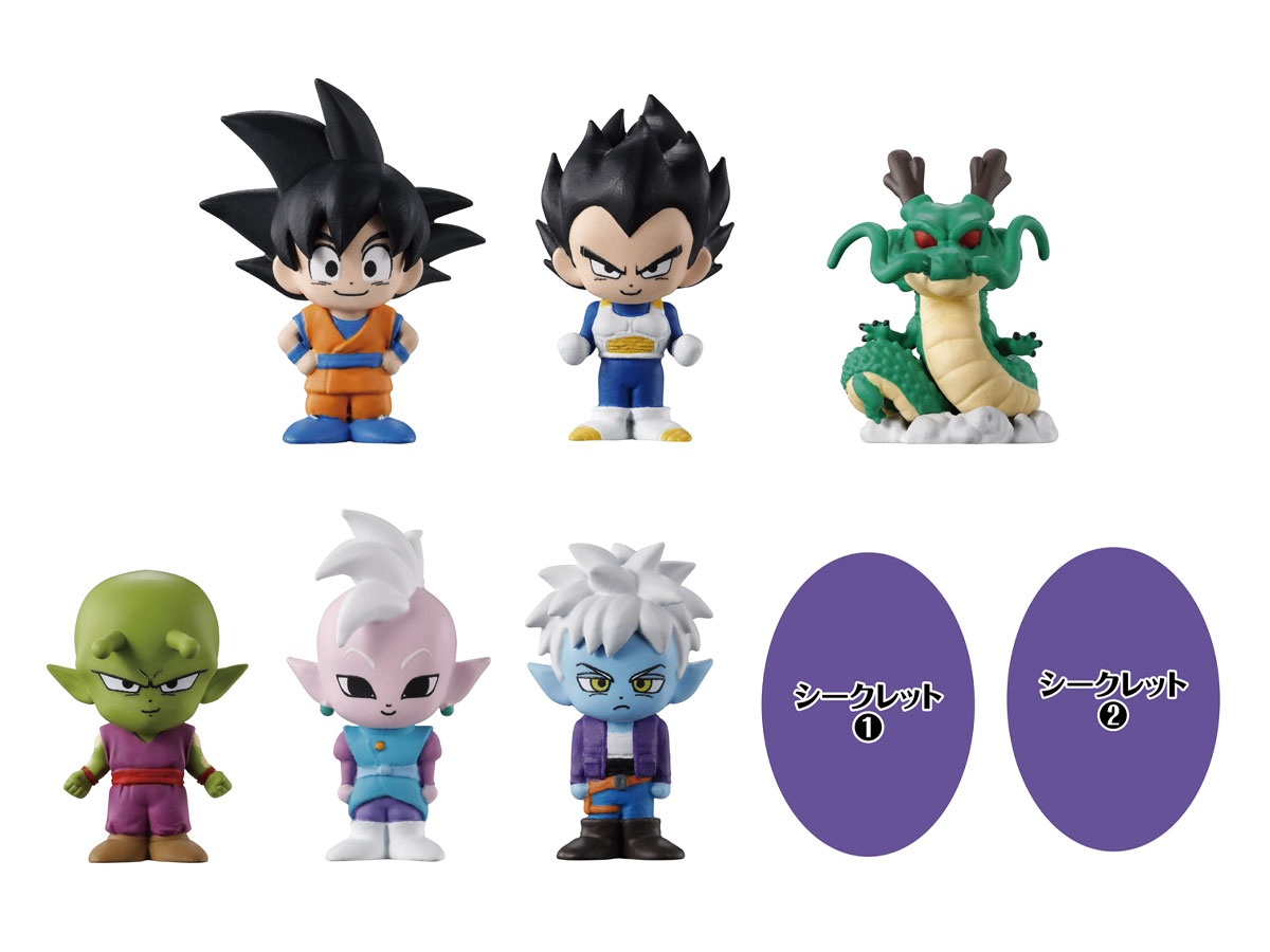 The eight-figure lineup includes: Goku (Mini), Vegeta (Mini), Shenron, Piccolo (Mini), Supreme Kai (Mini), Glorio, Secret #1, and Secret #2!