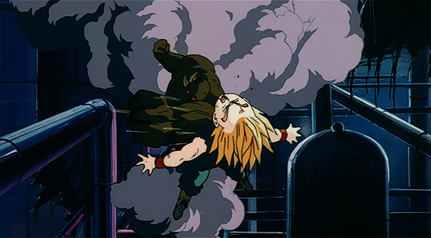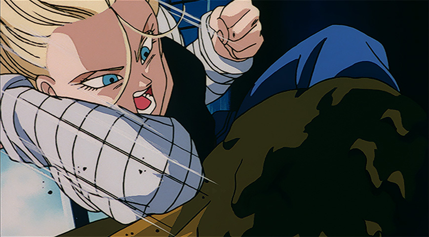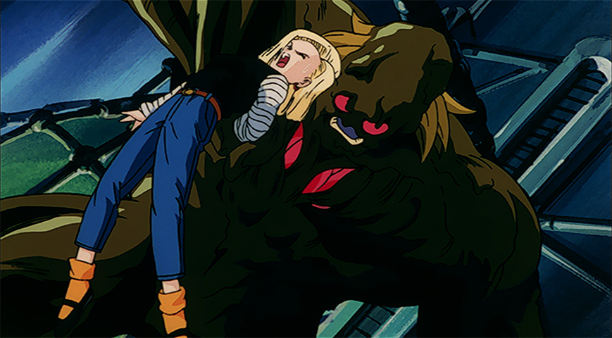 Android 18 launches attack after attack at the oozy monstrosity, but she is no match for him and is eventually defeated!