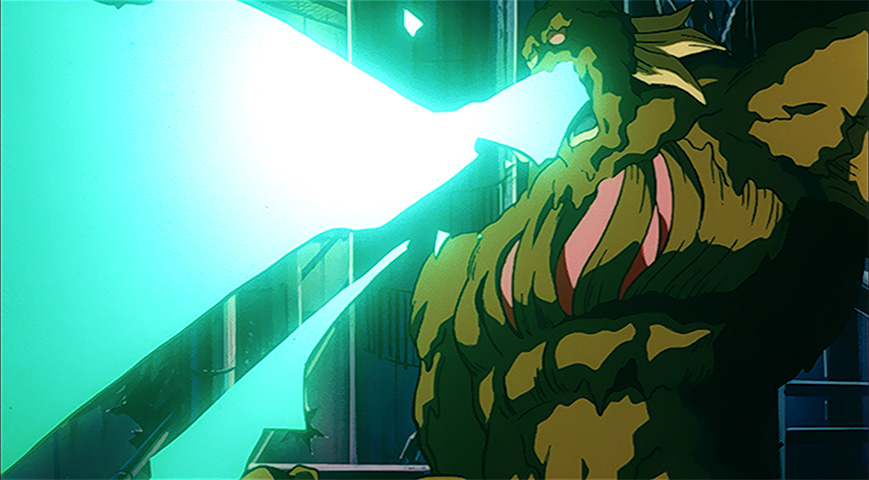 Bio-Broly stomps on Trunks and shows no mercy towards Baron Jaga Batta when he attempts to stop his creation!