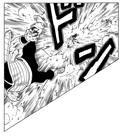 Reasoning that Goku will "never win by speed alone", Burter's next strategy is to try and keep Goku on the move, tire him out, and then go in for the kill, but he gets taken down by a fierce strike from Goku!