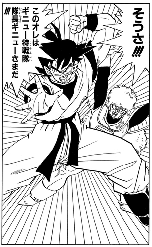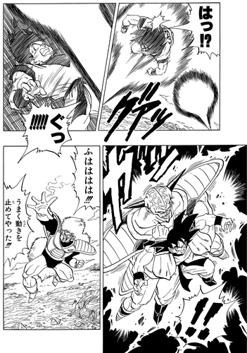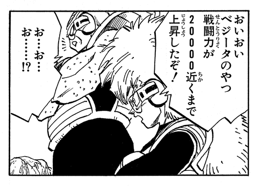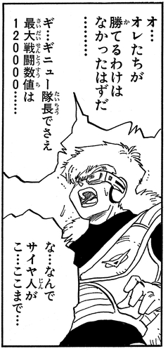 Goku then uses Kaio-Ken and his Power Level skyrockets to over 180,000, leading Ginyu to question if Goku could be the legendary Super Saiyan. Hearing this, a shocked Jiece utters, "The only thing... that Master Frieza himself ever feared?!"
