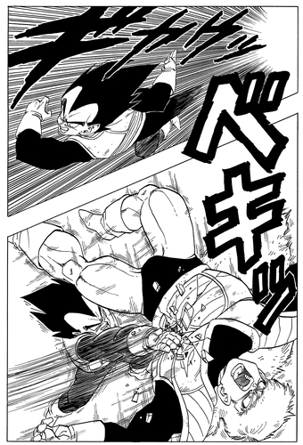 While Ginyu struggles to make use of Goku's form, Vegeta gets the drop on Jiece with a powerful strike that sends him flying!