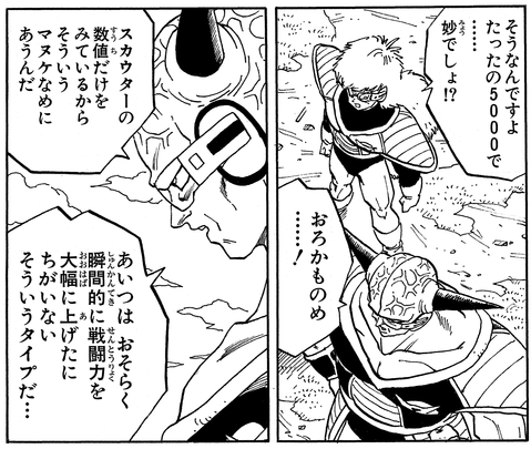 Jiece is unaware that Goku and the others can control their own Power Levels, and trusting the Power Level shown by his Scouter gets him into a sticky situation. Even though Ginyu warns him about this, he falls into the same trap again and his focus on his Scouter allows Vegeta to take him by surprise!