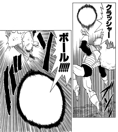 During the subsequent clash between Ginyu and Goku, Jiece uses his Crusher Ball to assist, but this infuriates Ginyu, who shouts, "Who asked you to help, fool?!"