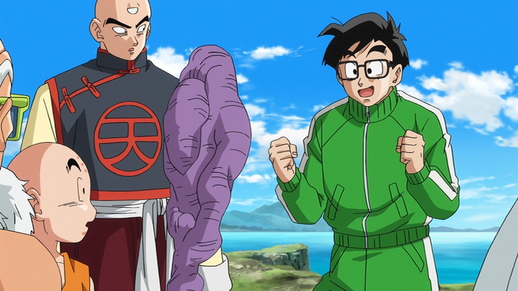 Unable to find his uniform upon Frieza’s sudden attack, Gohan shows up wearing a tracksuit he had lying around at home. When Kamesennin asks "Gohan. Have you kept up on your martial arts training at all?", he could only offer an awkward apology. Gohan continues on by saying "But I can definitely still turn Super Saiyan when I want to, maybe!", but that didn't really help his case much, either...