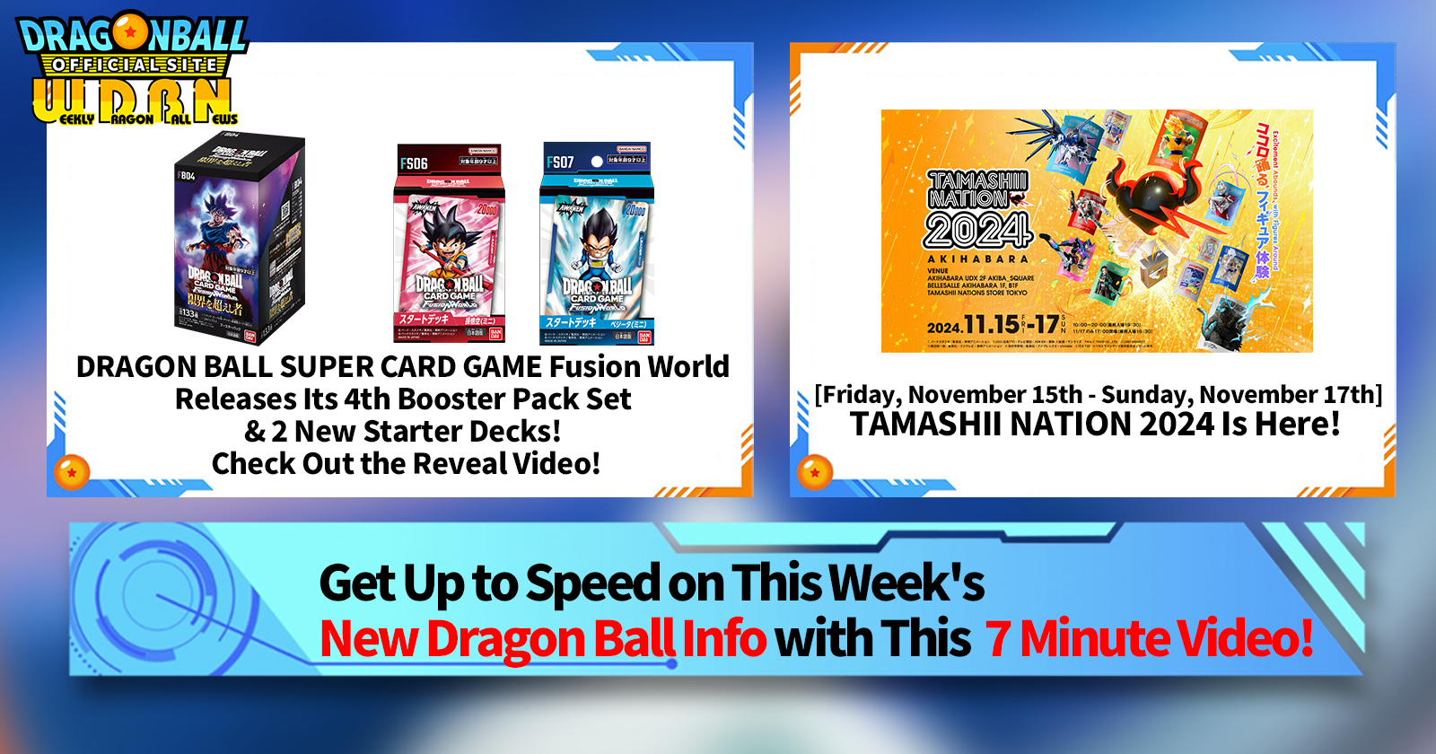 "Weekly Dragon Ball News" is a video series updated every Monday (JST) to bring you the latest news in the world of Dragon Ball! Join V Jump editor Victory Uchida as he covers all the hottest info released in the previous week as well as fresh updates like new product info and site news for the week to come!