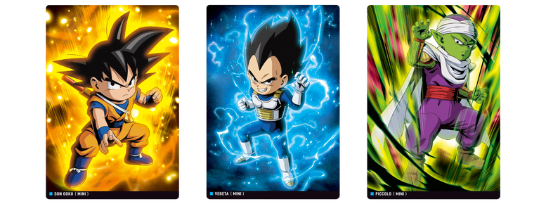 For the first time, this Itajaga series will include characters from the Dragon Ball DAIMA anime, which is airing now! In addition to the various mini versions of the characters, the new character, Glorio, will finally receive a card, too! Among the cards in this series, "Goku (Mini)" and "Vegeta (Mini)" are SR (Super Rare) cards with shiny gold foil effects!