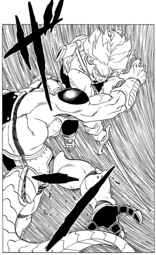 Frieza attacks the teen Super Saiyan, but his attack is dodged and he is sliced to ribbons by the boy's blade!