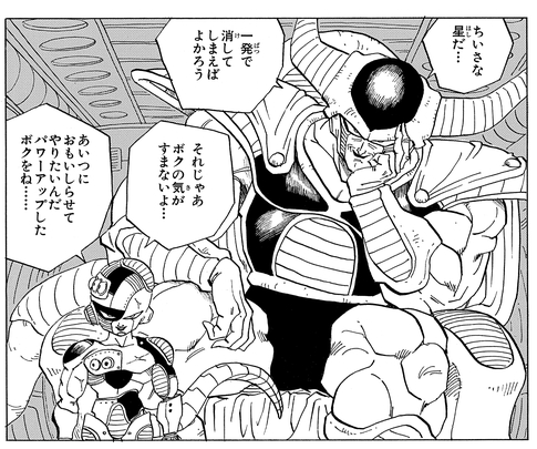 In order to take revenge on the Saiyan, he and his father, Cold, make landfall on Earth.