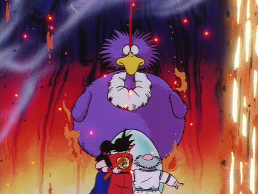 Gyumao's castle is suddenly engulfed in flames after Goku and Chichi's wedding. This results in the newlyweds setting off on a journey to search for the Bashosen, which they later discover can be made using Fire-Eater feathers.